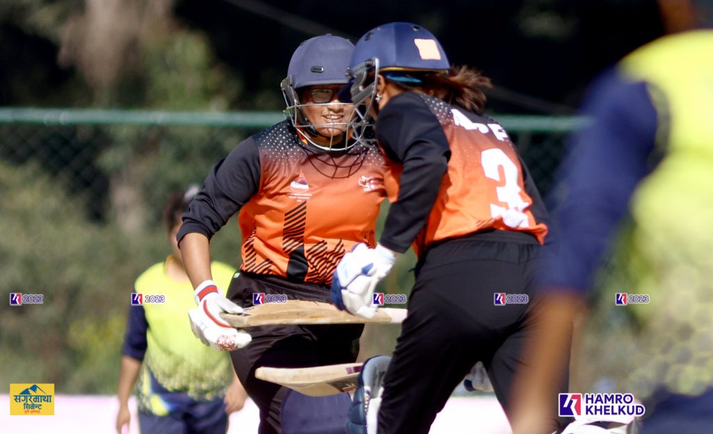 ओपनर ज्योति पाण्डेलाई कप्तान रुविनाले १२ रनमै बोल्ड गरेकी थिइन् । दोस्रो विकेटका लागि सीता र इन्दुले ४३ रनको साझेदारी गरेका थिए । कप्तान रुविना क्षेत्रीले ४ ओभरमा १८ रन खर्चेर १ विकेट लिइन् ।