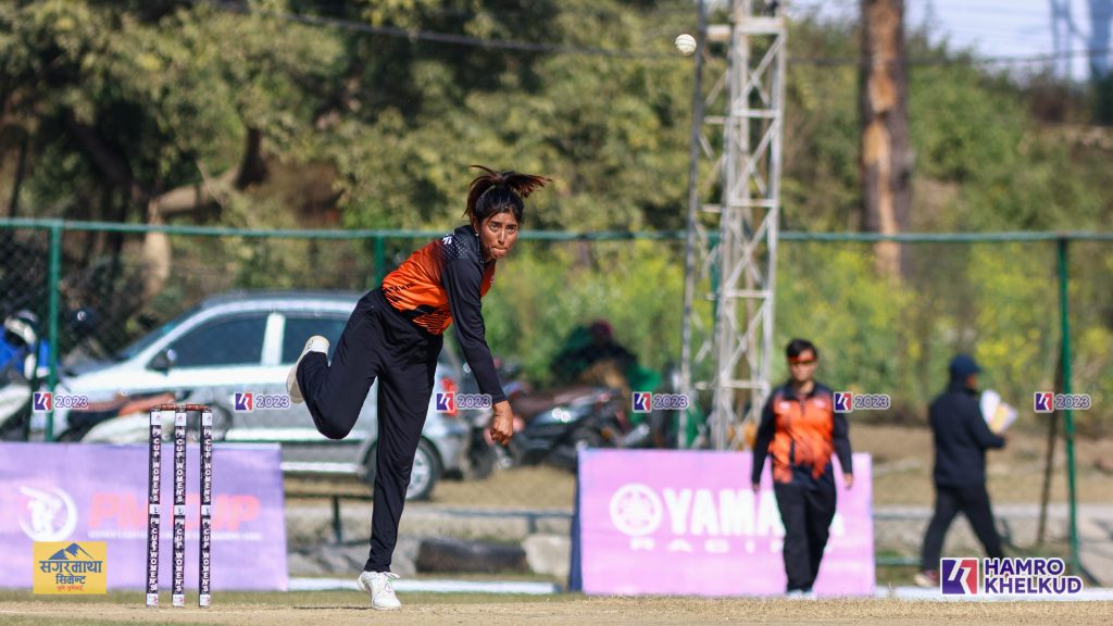सीता रानामगरले ३७ बलमा ३ चौका र २ छक्कासहित ४५ रनमा रन आउट भइन् । निशा शाहले उत्कृष्ट रन आउट गर्दै पेभेलिएन फर्केकी थिइन् । ओपनर ज्योति पाण्डेलाई कप्तान रुविनाले १२ रनमै बोल्ड गरेकी थिइन् । दोस्रो विकेटका लागि सीता र इन्दुले ४३ रनको साझेदारी गरेका थिए । कप्तान रुविना क्षेत्रीले ४ ओभरमा १८ रन खर्चेर १ विकेट लिइन् ।