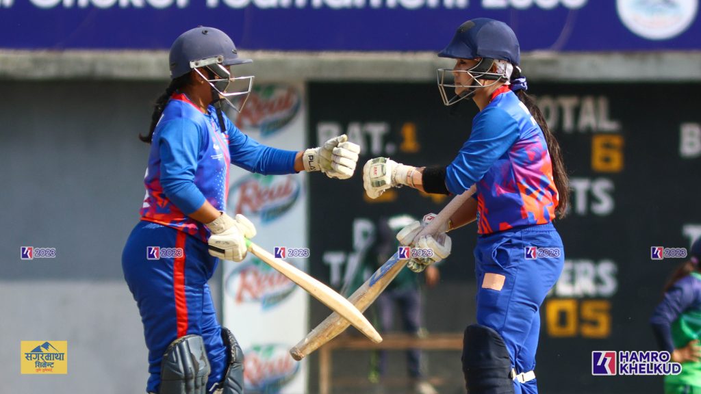 ओपनर विन्दु रावल र रुवि पोदारले पहिलो विकेटका लागि ६.३ ओभरमा २६ रनको साझेदारी गर्दै मध्यम सुरुवात दिलाएका थिए । विन्दु रावल १८ बलमा ३ चौकासहित १७ रनमा रन आउट भएकी थिइन् ।