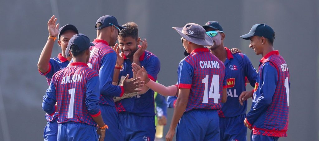 ओपनर अर्जुन कुमाल १, विपिन रावल २०, देव खनाल डक, गुलशन झा ३, दिपक बोहरा ५, उत्तम थापा मगर १२, आकाश त्रिपाठी २१, विशाल बिक्रम केसि १४ र दिपक बोहरा १५ रनमा आउट भए ।