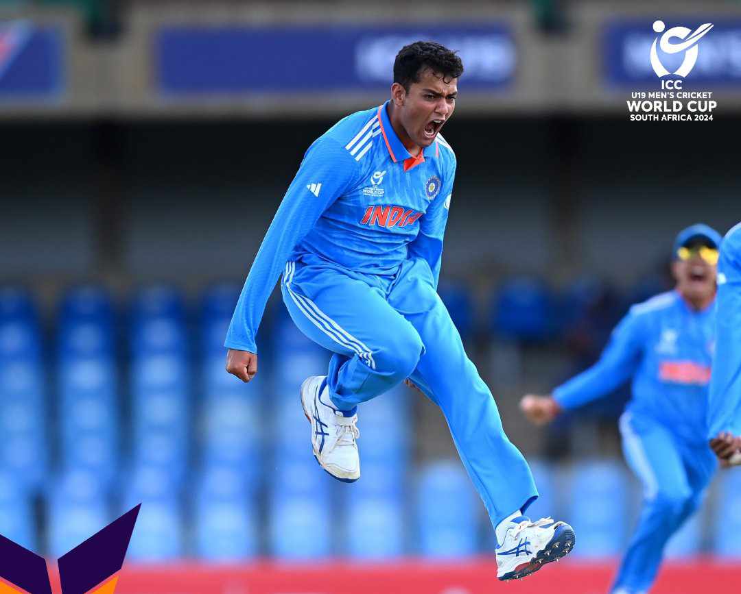 भारतका लागि सौम्य पाण्डेले ९.५ ओभरमा १ मेडनसहित २४ रन दिएर ४ विकेट लिएका थिए । मुसिर खानले २, राज लिम्बानी, अस्रिन कुलकर्णी र प्रियान्सु मोलियाले समान १ विकेट लिएका थिए ।