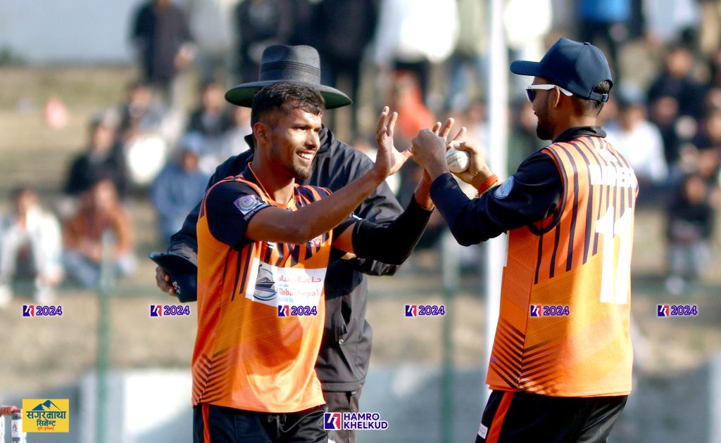 किरण ठगुन्ना पनि २० रन मात्र बनाएर रंजित कुमारको बलमा क्याच आउट भए । कप्तान राजु रिजाल आउट हुनु अघि ३० बल खेलेरा ५ रन मात्र बनाउन सके ।