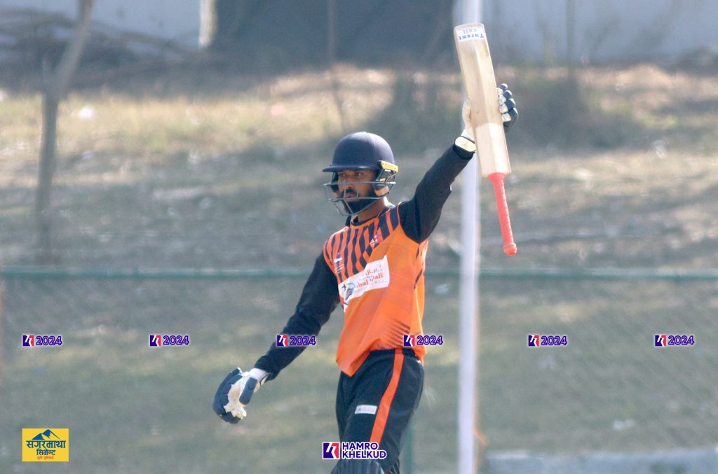 अनिल र मयन यादव मिलेर दोस्रो विकेटका लागि १०५ रनको साझेदारी गरेका थिए । मयन ४४ बलमा २७ रन बनाएर २०औं ओभरमा आउट भएका थिए । चौथो नम्बरमा आएका पवन सर्राफ ३८ बलमा ३ चौका र २ छक्का प्रहार गर्दै ४० रन बनाएर सन्दिपकै बलमा क्याच आउट भए ।