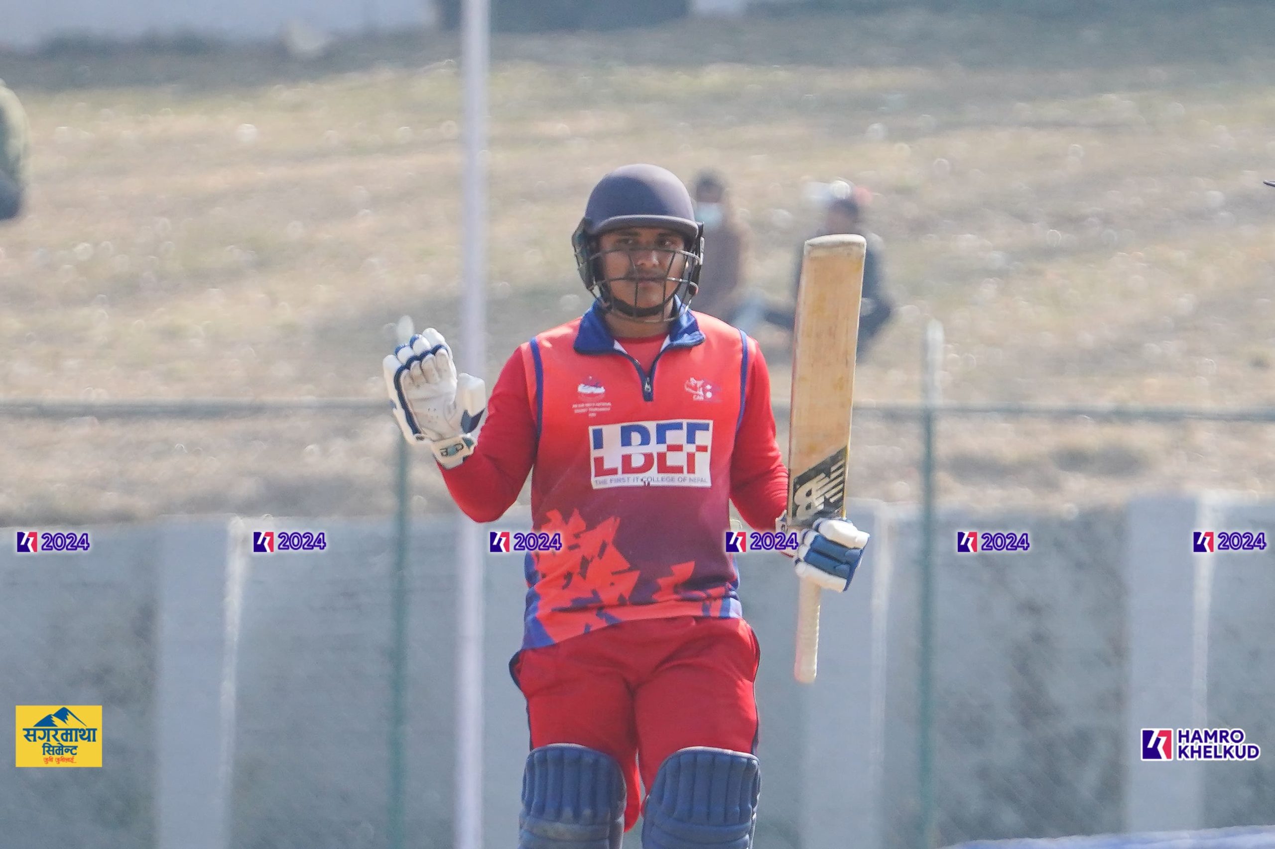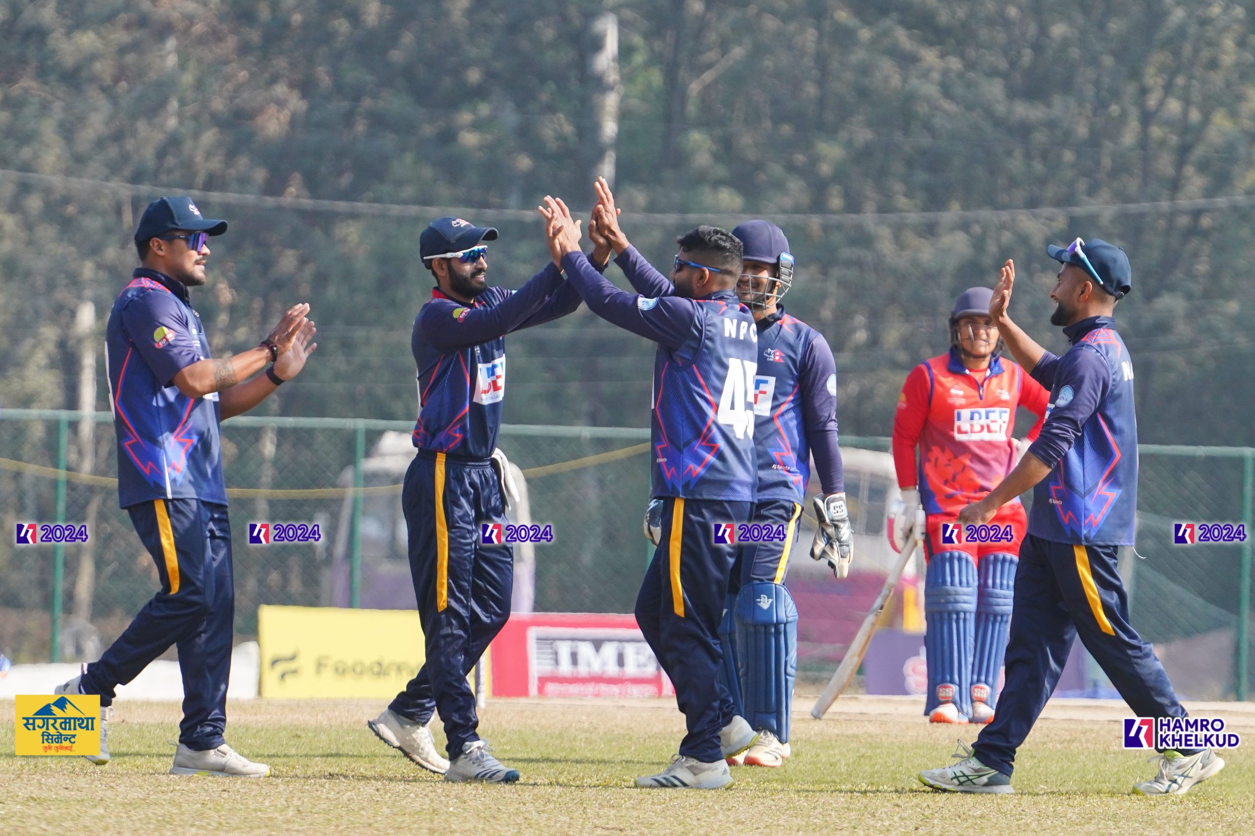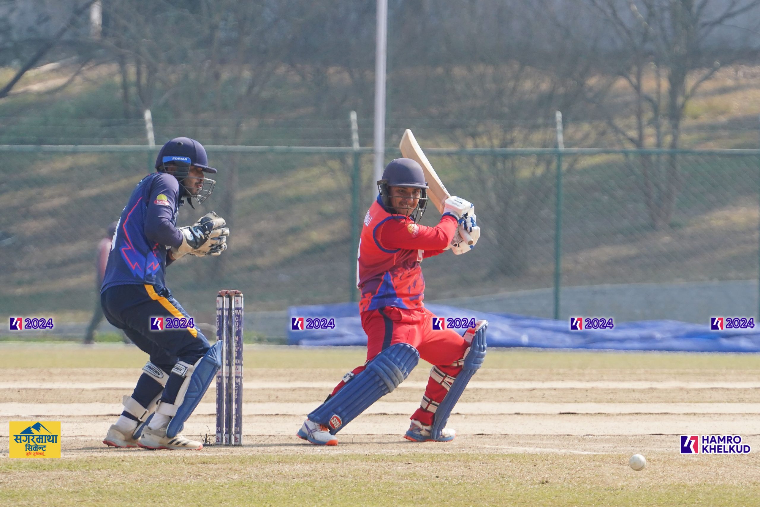 अर्जुन घर्तिले राम्रो सुरुवात गरेपनि २३ रनमा दिपेन्द्र सिंह ऐरिको बलमा कुशल भुर्तेलद्वारा क्याच आउट भए । प्रकाश जैशीलाई सागर ढकालले ५ रनमा बोल्ड गरे । दिपेन्द्र रावत १८ बलमा ३ रन बनाउदै कुशल भुर्तेलको बलमा क्याच आउट भए । दिनेश अधिकारीलाई ललित भण्डारीले ३ रनमा आउट गरे । युनिश सिंह पनि उनकै बलमा शुन्यमा आउट भए ।
