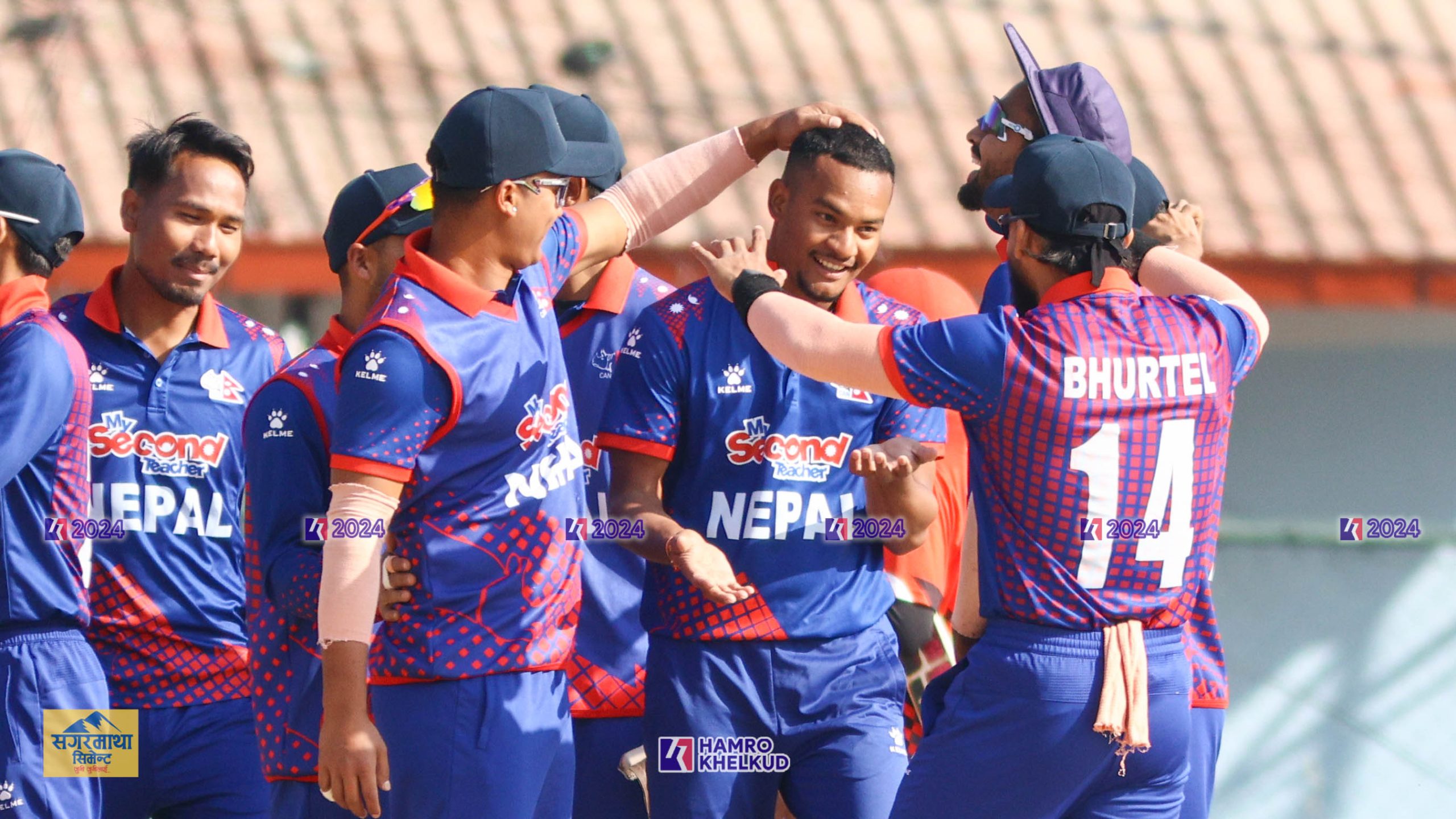 नेपालको प्लेइङ ११: रोहित पौडेल (कप्तान), अनिल शाह, कुशल मल्ल, देव खनाल, आरिफ शेख, पवन सर्राफ, आकाश चन्द, हेमन्त धामी, कुशल भुर्तेल, ललित नारायण राजवंशी, भीम सार्की