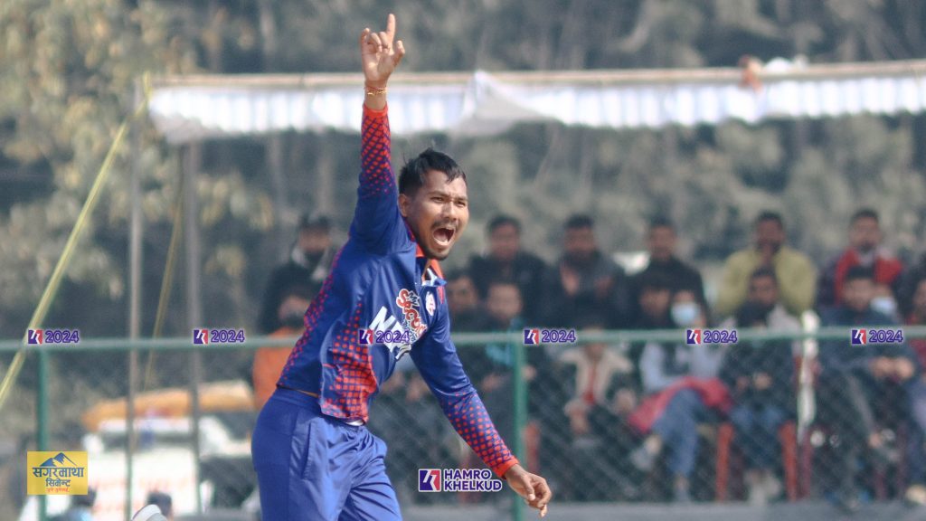 लगत्तै अर्को ओभरमा रोहित पौडेलले आफ्नो पहिलो ओभरमा शरिज अहमदलाई १ रनमा बोल्ड गरे ।