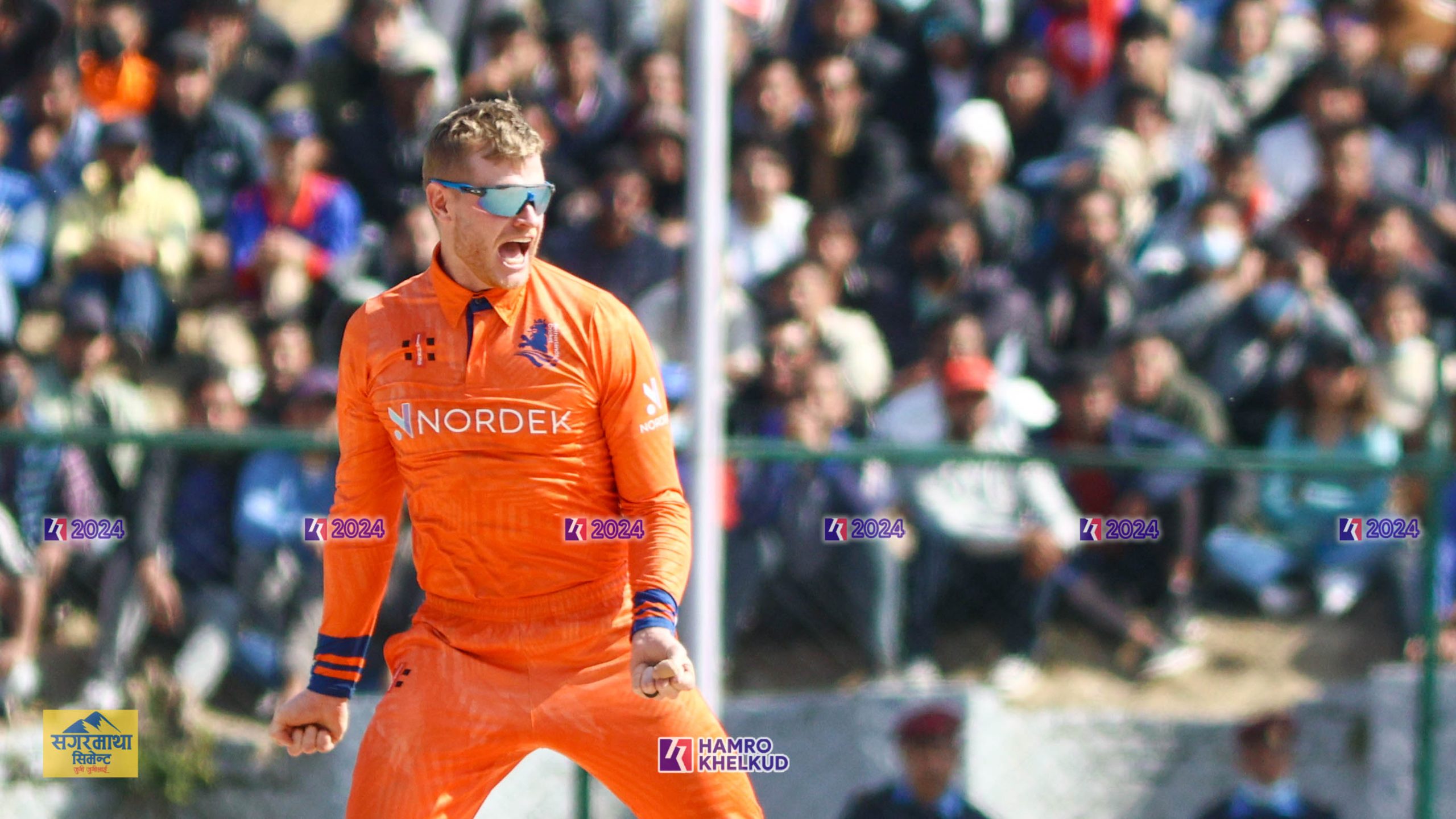 अन्तिम ओभरमा नेपाललाई जितको लागि १५ रन चाहिएको थियो । दीपेन्द्रले भान डर मर्वको सुरुवाती दुई बललाई कभरको दिशामा चौका र छक्का प्रहार गरे । तेस्रो बलमा दोस्रो रन जोड्दा करण रनआउट भए ।