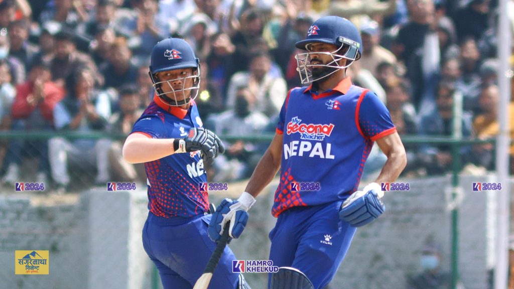 ओपनर आसिफ शेख दोस्रो ओभरको पहिलो बलमा बेन शिकोंगोको शिकार बने । उनले २ बलमा १ रन जोडे । कप्तान रोहित ९ बलमा १० रन जोड्दै चौथो ओभरको चौथो बलमा क्याच आउट भए ।