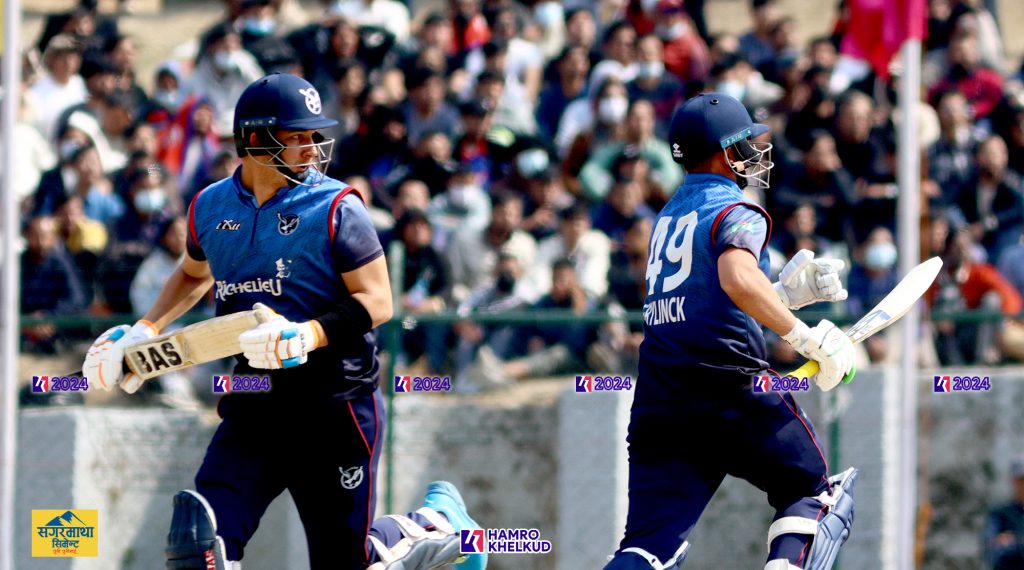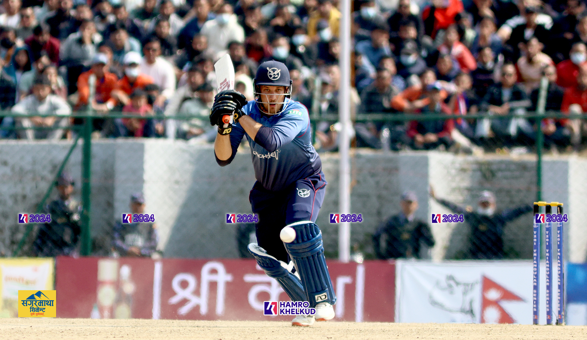 दीपेन्द्र ८ बलमा २ चौकासहित १६ रन जोड्दै शिकोंगोको एलबीडब्लु धरापमा परे । करण केसी ३ बलमा १ छक्कासहित ७ रन बनाएर पेभेलियन फर्किए ।