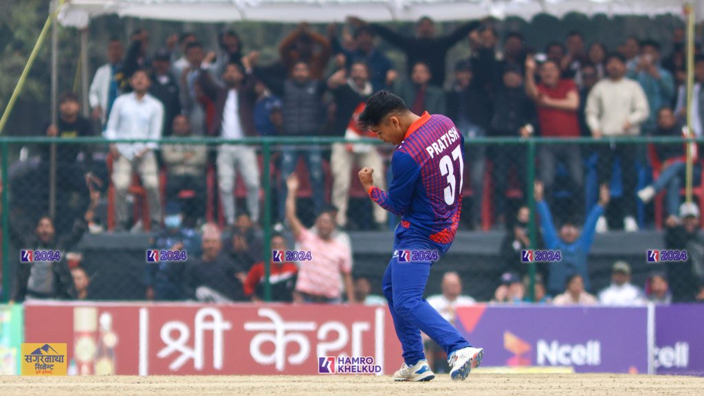 नेपालका प्रतिश जिसीले समग्रमा ३ विकेट लिँदा करण केसी र कुशल मल्लले २-२ तथा दीपेन्द्रसिंह ऐरीले १ विकेट लिए । अन्तिम विकेट कुशल भुर्तेलको थ्रोमा रनआउट भएको थियो ।