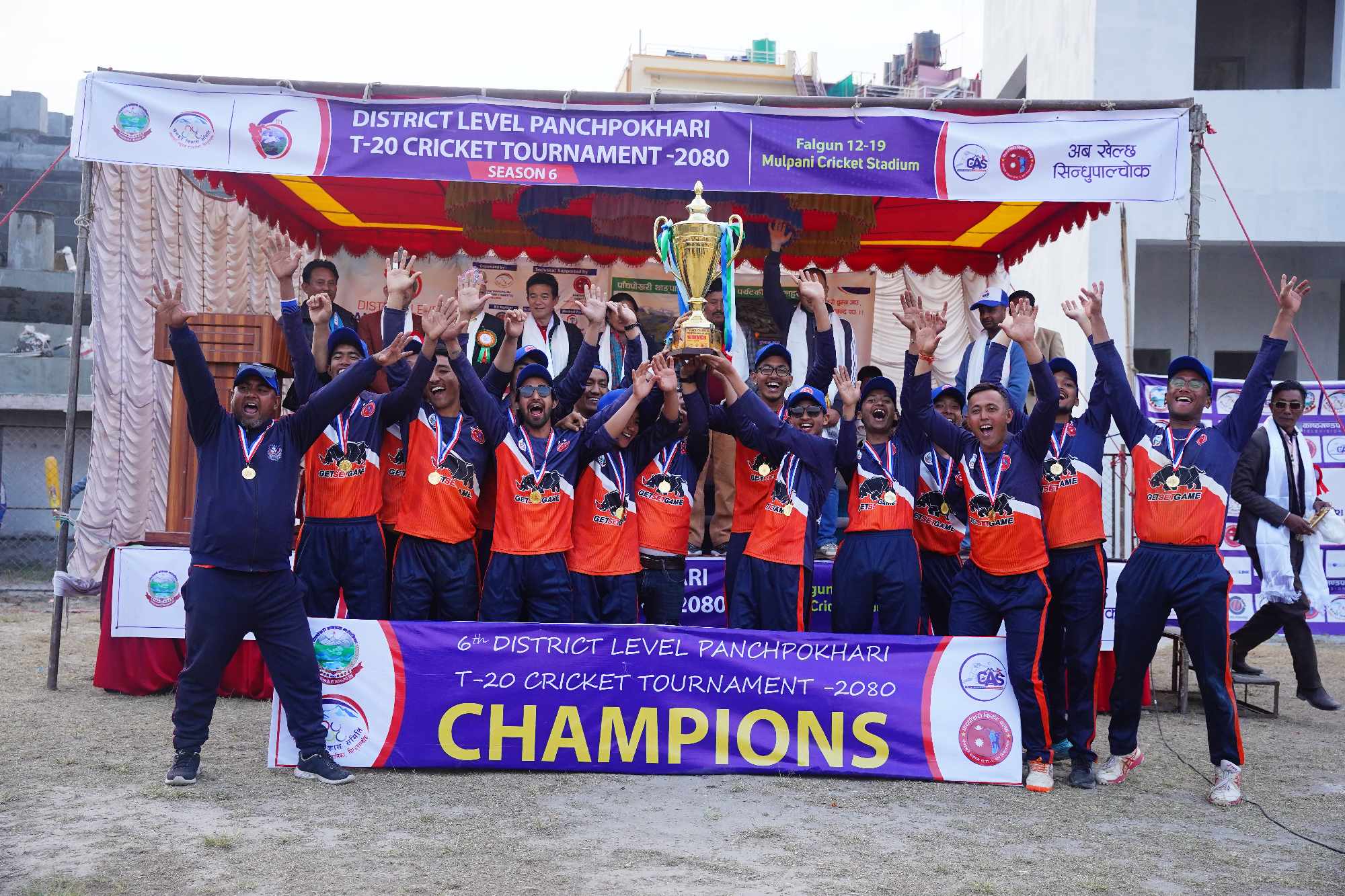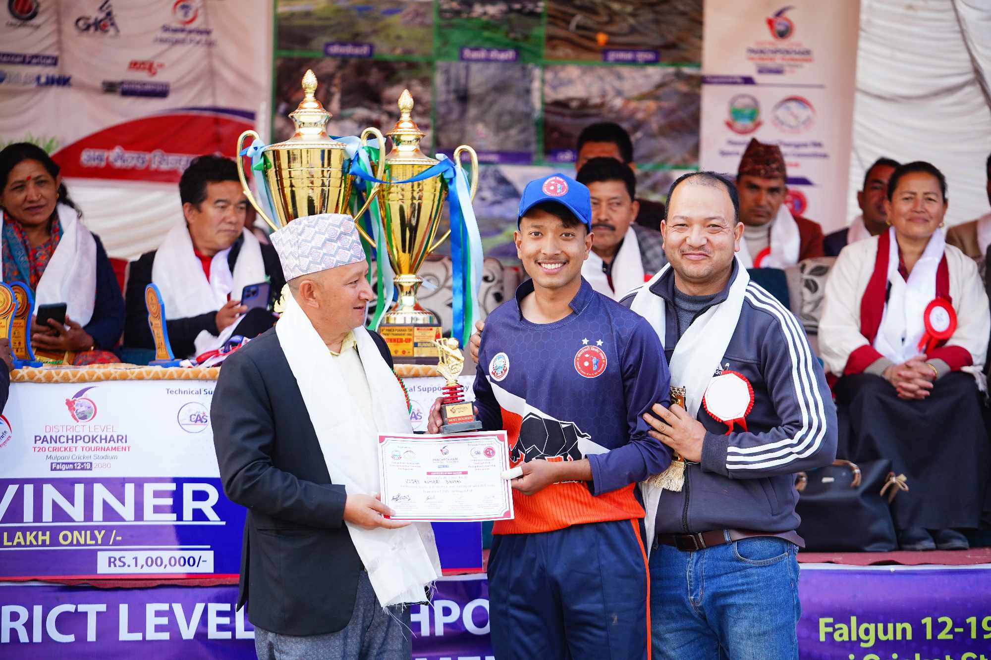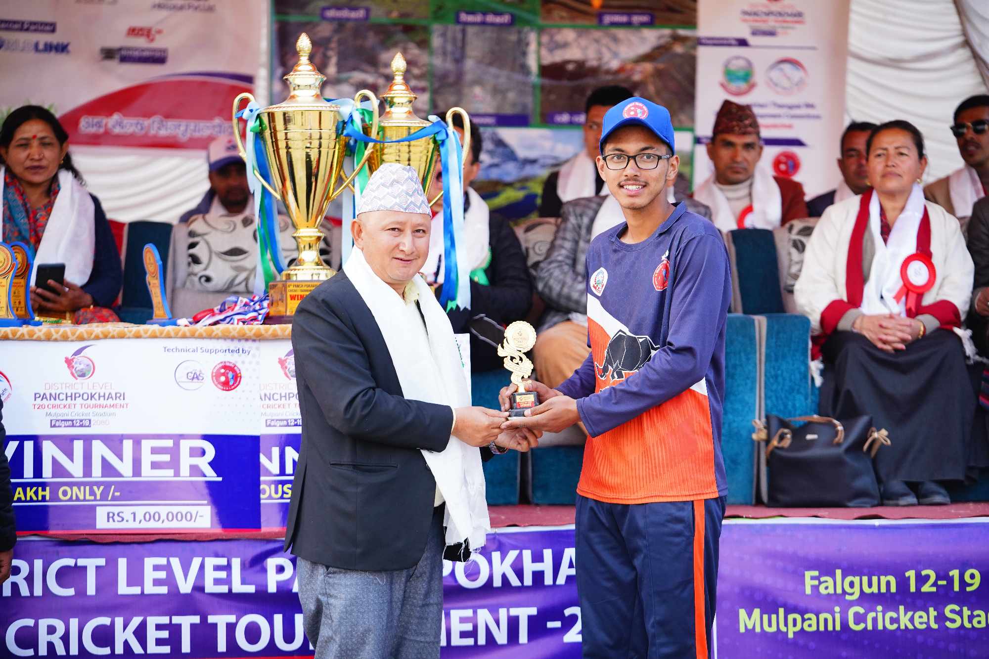 मुलपानी क्रिकेट रंगशालामा सम्पन्न फाइनलमा पाँचपोखरी १३ रनको जित दर्ता गर्दै च्याम्पियन बनेको हो । सार्थक धितालको लगातार दोस्रो अर्धशतकमा पाँचपोखरीले ह्योल्मोसामु १ सय ६५ बलियो लक्ष्य प्रस्तुत गरेको थियो । तर ह्योल्मोले २० ओभरमा ८ विकेट गुमाएर १ सय ५१ रन मात्र जोड्न सक्यो ।