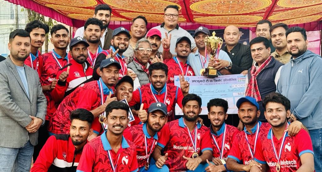 हेटौंडा ( हाम्रो खेलकुद) – पर्साको नेसनल इन्फोटेक कलेजले अन्तरकलेज क्रिकेट प्रतियोगिताको उपाधि जितेको छ । हेटौंडा जेसीजको आयोजनामा हेटौंडा–४ स्थित हुप्रचौरमा मंगलबार भएको फाइनलमा हेटौंडा स्कुल अफ म्यानेजेमेन्टलाई ४ विकेटले पराजित गर्दै नेसनल अष्टकुमारी स्मृति टी–२० क्रिकेट प्रतियोगिता च्याम्पियन भएको हो ।