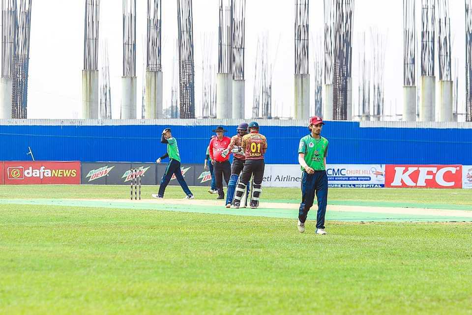 मध्यक्रममा निरज यादवले २४ रन जोडे । बलिङमा दिपक बोहोराले ३, भोजराज भट्ट र युवराज खत्रीले समान २ तथा नरेन साउद र वसन्त कार्कीले १/१ विकेट लिए ।