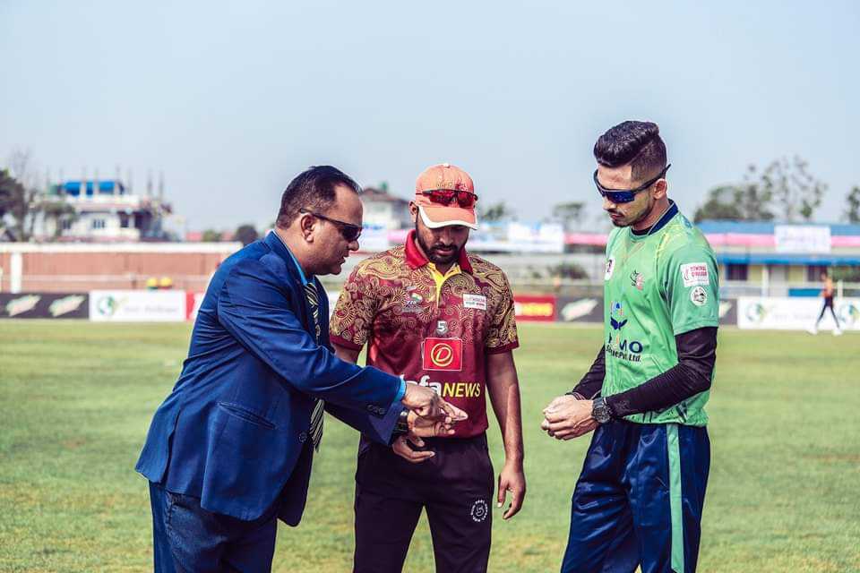 मधेशका लागि ओपनर साहिल पटेल २५ रन जोड्दा नरेन साउदको बलमा एलबीडब्लु धरापमा परे । अर्का ओपनर रोहन विश्वकर्मा २३ रन बनाउदा भोजराज भट्टको बलमा नरेन साउदद्वारा समातिए ।
