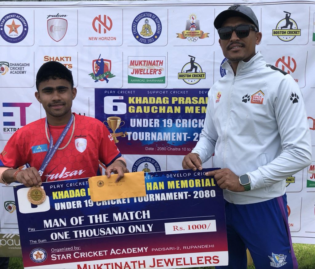 नेपालका पूर्व अन्तराष्ट्रिय क्रिकेट खेलाडी शक्ति प्रसाद गौचनले बुबाको नामबाट आयोजना रुपन्देहीमा जारी छैंटौं खड्ग प्रसाद गौचन मेमोरियल यु—१९ क्रिकेट प्रतियोगिता–२०८० मा बिहीबार समुह बिका २ खेल सम्पन्न भएका छन् ।