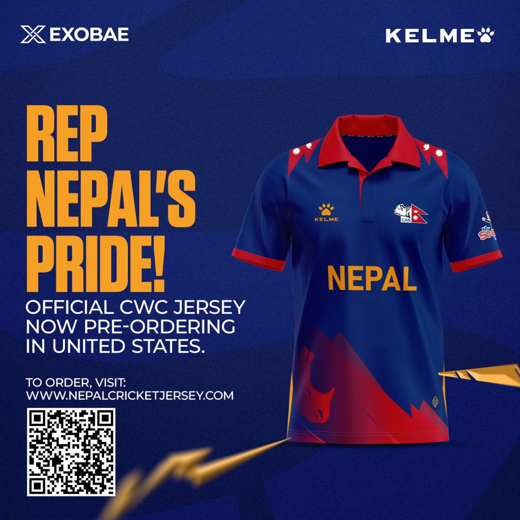 टेक्सस (हाम्रो खेलकुद) – अमेरिका र वेष्ट इन्डिजमा संयुक्त रुपमा हुने आइसीसी टि ट्वान्टी विश्वकपका लागि नेपाल क्रिकेट संघ (क्यान) ले केहि दिन गत साता काठमाडौंमा नेपाली टोलीले लगाउने जर्सी सार्वजनिक गरेको थियो ।