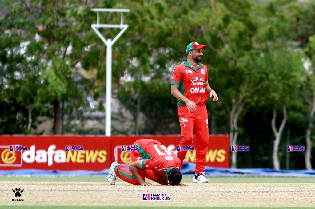 त्यसअघि ओमानले ११ ओभरमा ६ विकेट गुमाउँदै १ सय ५४ रन जोड्यो । ओपनर नसीम खुसीले २७ बलमा ६९ रनको विष्फोटक इनिङ खेले । उनले २७ बलमा ६ चौका र ६ छक्का प्रहार गरेका थिए । उनी आठौं ओभरमा उत्कर्ष जेनबाट बोल्ड भए ।