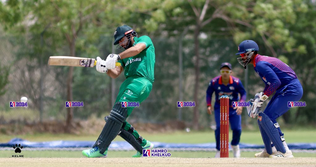 पिच भिजेका कारण ८ ओभरमा घटाइएको खेलमा साउदीले दिएको ७४ रनको लक्ष्य नेपालले ७.१ ओभरमा ४ विकेट गुमाएर भेटायो । नेपालका लागि गुलशन झा १६ बलमा १ चौका र २ छक्का सहित २८ रन बनाएर अविजित रहे । यस्तै कप्तान रोहित पौडेल ७ बलमा १७ रनमा नटआउट रहे ।