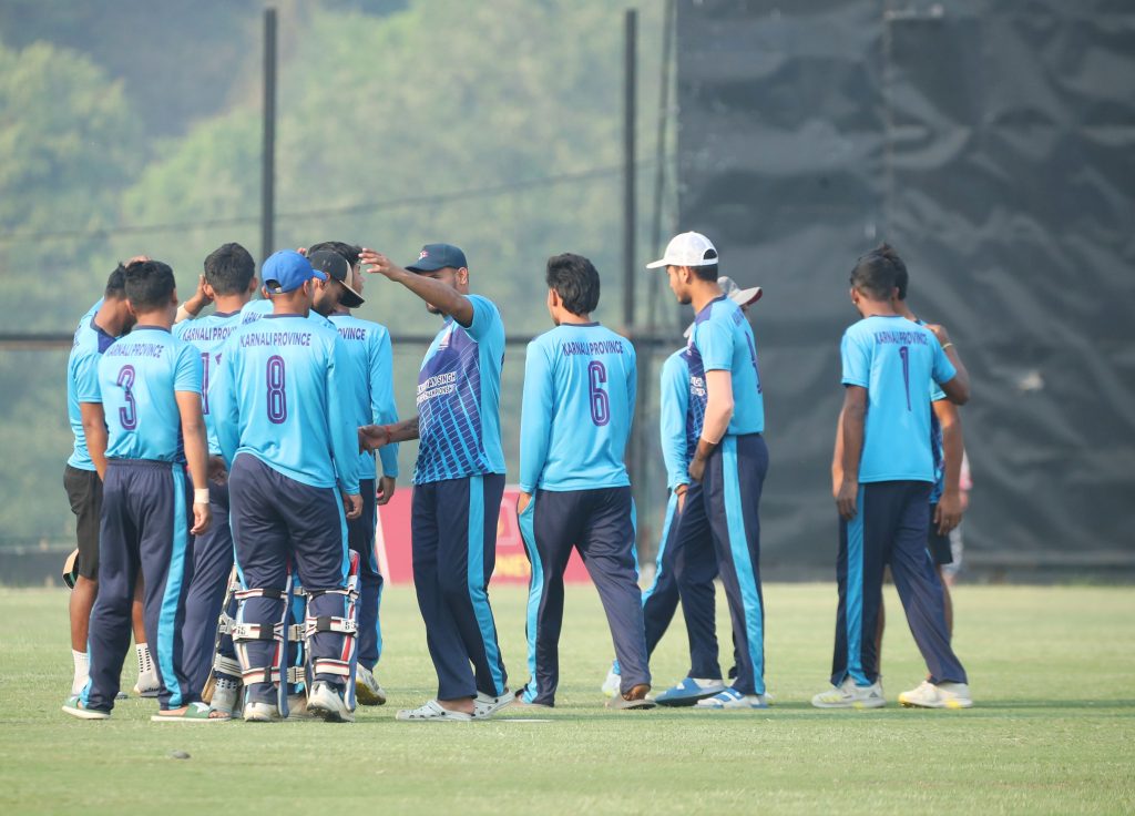 बलिङमा कर्णालीका उनीस ठकुरीले २ विकेट लिंदा दिवान पुन, दीपेन्द्र रावत, दिनेश अधिकारी र प्रकाश जैसीले समान १/१ विकेट लिए । कर्णालीले ४ अंक छ । ४ खेलमा मधेशको नि ४ अंक नै छ ।
