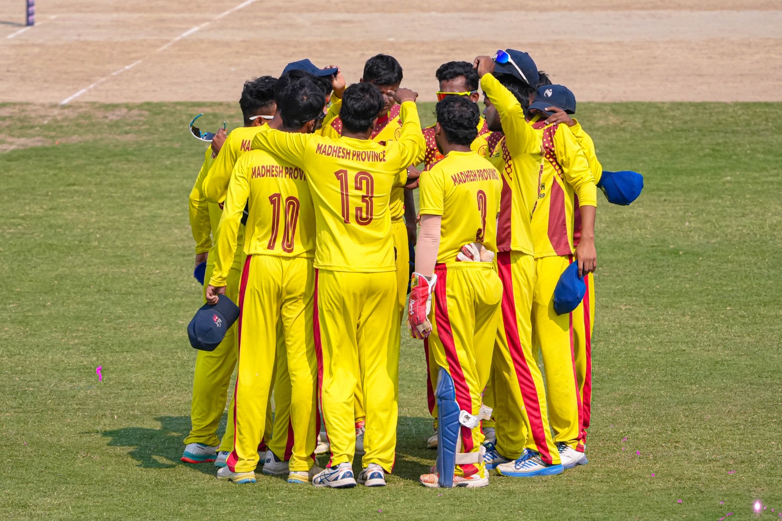 म्यान यादव २ रनमा तथा त्यसपछि कप्तान राहुल मण्डल, अरनिको यादव र विशाल सुश्लिङ्ग शुन्यमा आउट भए। टोलीले ५ विकेट गुमाउँदा मात्र १८ रन बनाएको थियो। लगतै प्रदीप पासवान पनि १ रनमा पबिलियन फर्केपछि मधेशले निकै संघर्ष गर्यो।