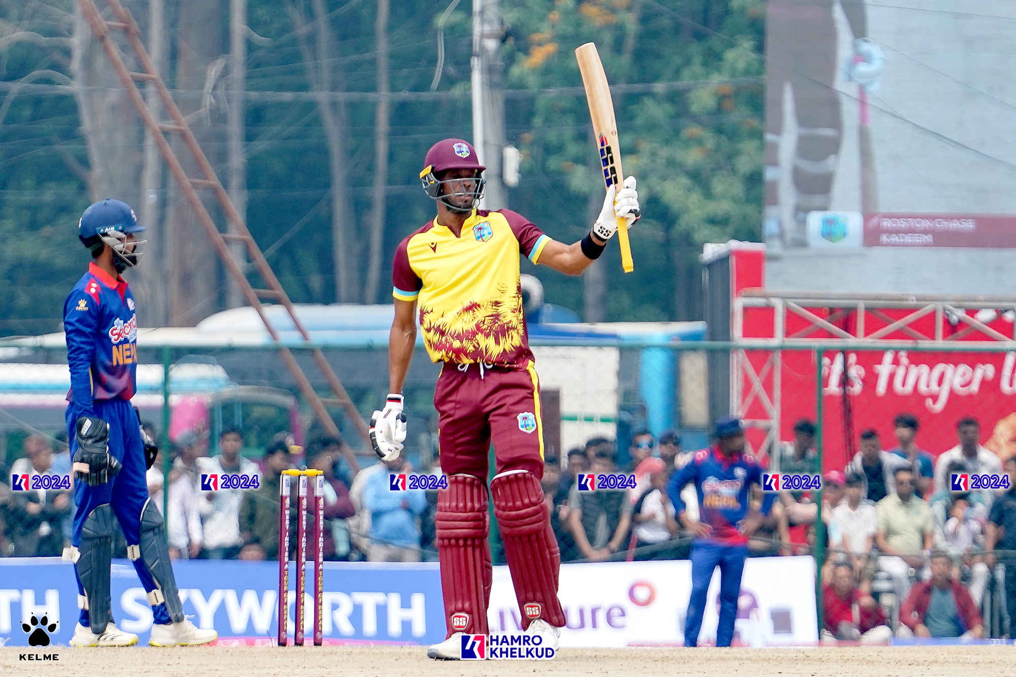 चेजले ४६ बलमा ८ चौका र २ छक्कासहित ७४ रन जोडे । उनी अन्तिम ओभरमा दीपेन्द्रको शिकार बने । डेब्यु गरेका कदिम एलेनेले १४ रन बनाए ।