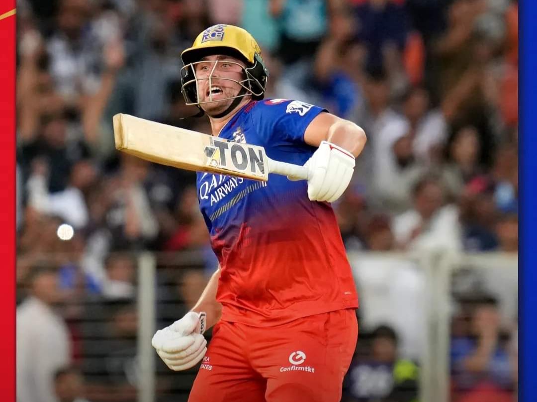 गुजरातले दिएको २०१ रनको विशाल लक्ष्य आरसिबिले १६ ओभरमै १ विकेट मात्र गुमाएर भेटायो । आरसिबिका लागि ज्याक्सले ४१ बलमा ५ चौका र १० छक्का प्रहार गर्दै १०० रन पुर्याए ।