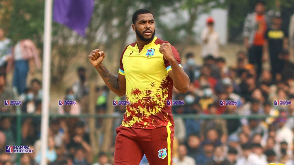 चौथो विकेटका लागि ४४ रनको साझेदारी गरिसकेपछि कप्तान रोस्टन चेज अविनाश बोहोराको शिकार बने । १४औ ओभरमा चेज २३ बलमा ५ चौकासहित ३३ रन बनाएर सन्दिप जोराद्वारा समातिए ।