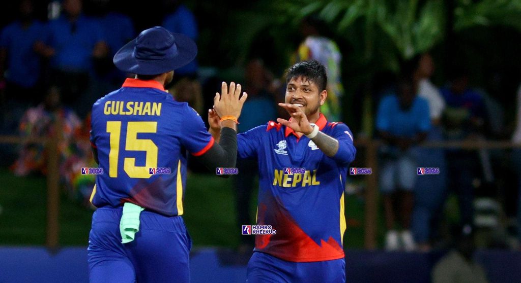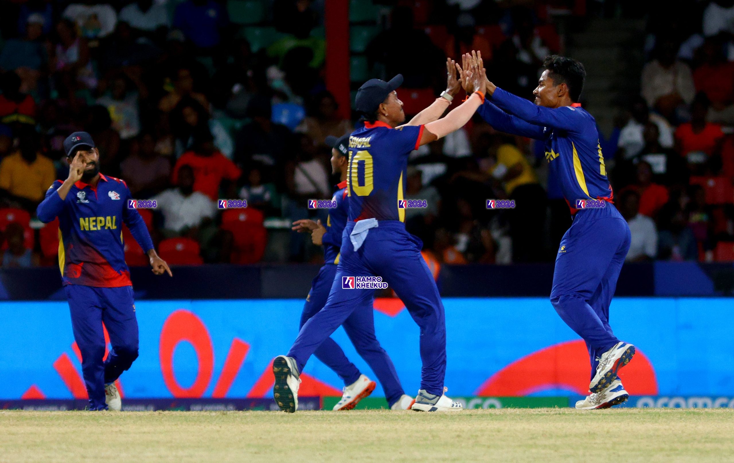 नेपालका लागि सोमपाल कामी, दीपेन्द्र सिंह ऐरी, रोहित पौडेल र सन्दिप लामिछानेले समान २ विकेट लिए ।