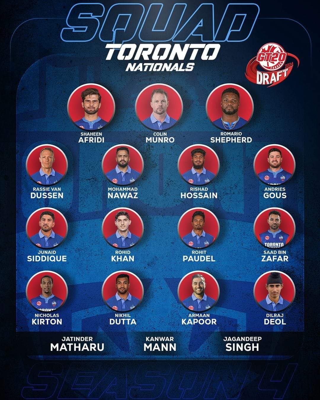 यस्तै पाकिस्तानका स्पिनर मोहम्मद नवाज, बंगलादेशमा ऋषाद होसेन, अमेरिकाका आन्द्रेस गुस र क्यानडाका कप्तान साद बिन जफरलाई पनि टोरोन्टोले अनुबन्ध गरेको छ ।
