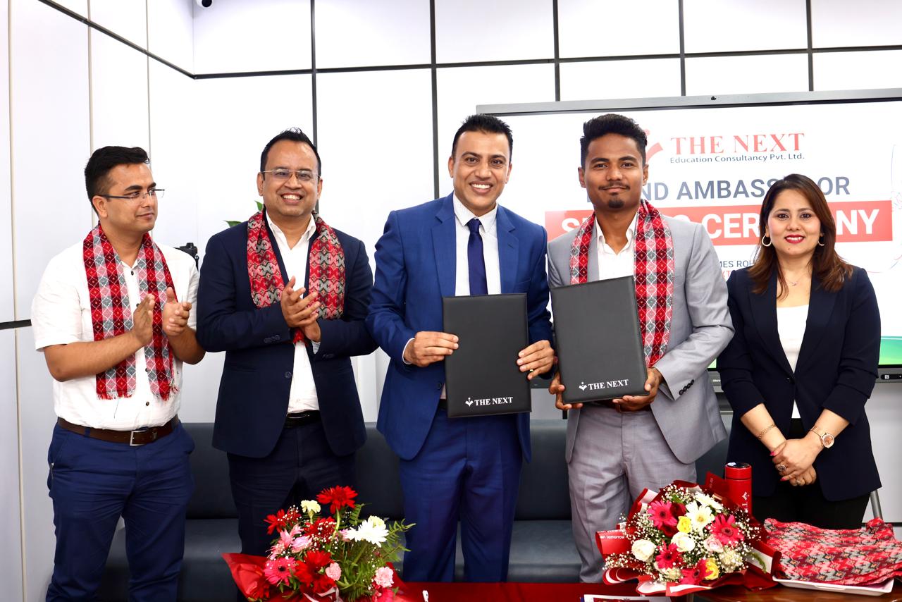 काठमाडौं (हाम्रो खेलकुद) – नेपाली राष्ट्रिय क्रिकेट टोलीका कप्तान रोहित पौडेललाई शैक्षिक परामर्ष सेवा प्रदान गर्दै आइरहेको संस्था द नेक्स्ट एजुकेशन कन्सल्टेन्सीले ब्रान्ड एम्बेसडर नियुक्त गरेको छ ।