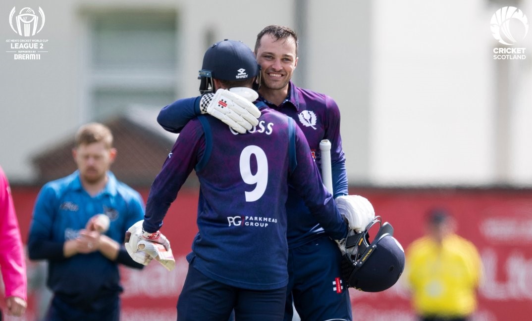 आइसीसी क्रिकेट विश्वकप लिग टु सिरिज अन्तर्गत स्कटल्यान्डमा जारी ओमान, नामिबिया र घरेलु टोलीबीचको त्रिकोणात्मक सिरिजको छैटौं खेलमा स्कटल्यान्डले १ सय ३८ रनको फराकिलो जित हात पारेको हो ।