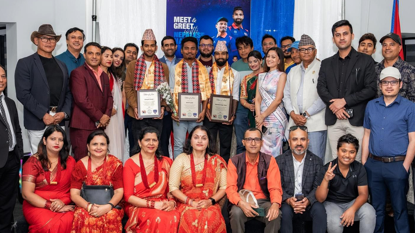 काठमाडौं (हाम्रो खेलकुद) – व्यवसायिक क्रिकेट खेल्न क्यानडामा रहेका नेपाली राष्ट्रिय क्रिकेट टोलीका कप्तान रोहित पौडेल र उपकप्तान दीपेन्द्र सिंह ऐरीको सम्मानमा ‘मिट एन्ड ग्रिट’ कार्यक्रम भएको छ।