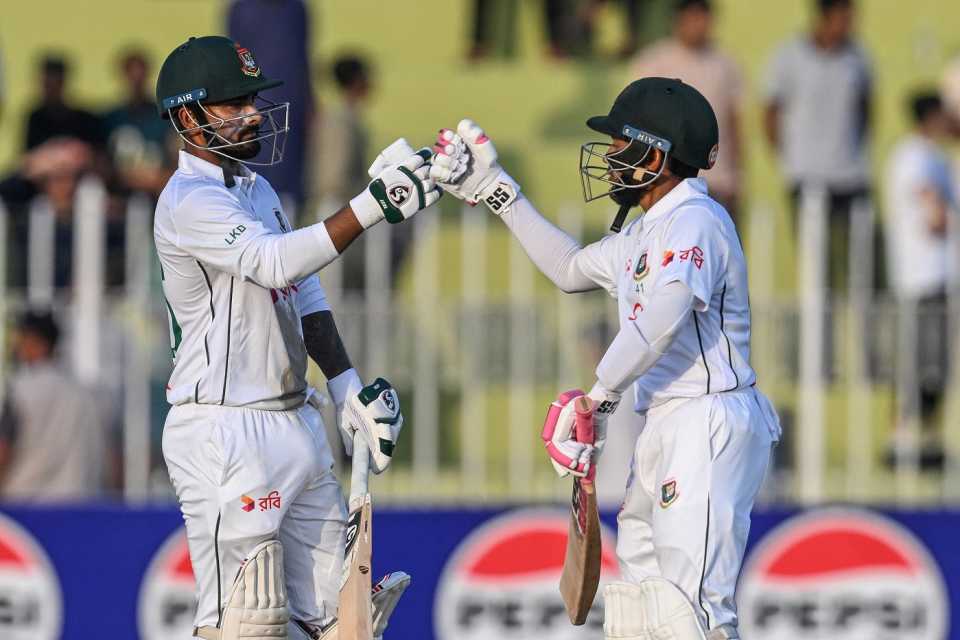 ओपनर शदमान इस्लामले ९३, मोमिनुल हकले ५०, साकिब अल हसनले १५, कप्तान नजमल हसन शान्तोले १६ तथा जाकिर हुसैन १२ रनमा जोडे । घरेलु टोलीका लागि खुरम शाहजादले २, नसिम शाह, सइम अयुब र मोहम्मद अलिले समान १ विकेट लिए ।