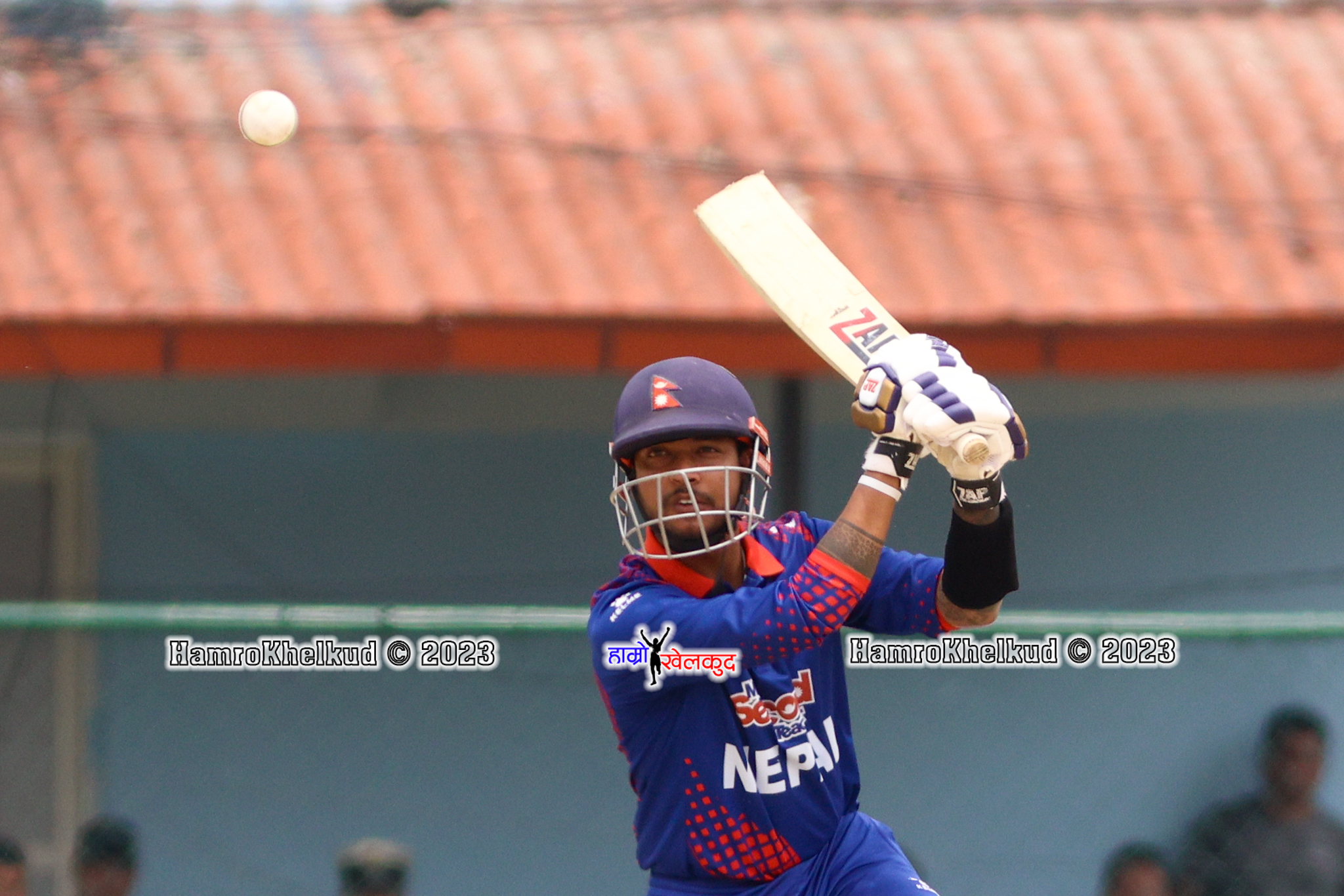 नेपालका लागि सन्दीप लामिछानेले ४८ बलमा सर्वाधिक ४९ रन जोडे । उनले ५ चौका र १ छक्का प्रहार गरे। सन्दीपको ओडिआई करियरको यो उत्कृष्ट ब्याटिङ प्रदर्शन हो । यस अघि सन्दीपले सन् २०२३ मा पिएनजीसँग ५० बलमा नट आउट ३५ रन बनाएका थिए ।