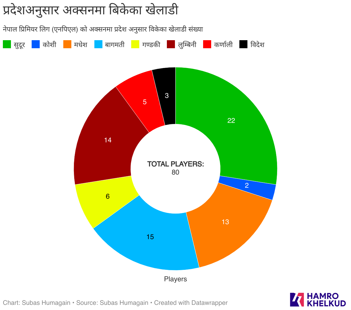 अक्सनमा बिकेका ८० खेलाडीमध्य २२ जना सुदुरपश्चिम प्रदेशका छन् । त्यसपछि बागमतीका १५, लुम्बिनीका १४ र मधेशका १३ खेलाडी विक्री भएका छन् । गण्डकीबाट ५ खेलाडी र कर्णालीबाट ५ जनाले एनपिएल खेल्नेछन् । पूर्वको कमजोर अवस्था यस्तो छ की विदेशमा क्रिकेट खेल्ने ३ खेलाडी अक्सनमा विक्री हुँदा पूर्वबाट मात्र २ खेलाडी अक्सनमा बिकेका छन् ।