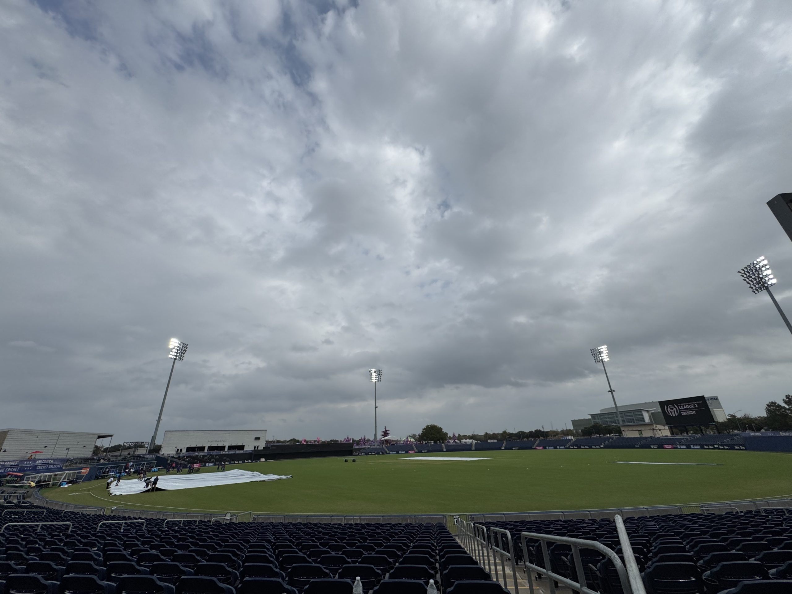 त्यसअघि १ ओभरमा १ रन बनाउँदा दुई घण्टा खेल रोकिएको थियो । त्यसपछि ७-७ ओभर घटाएर खेल सुरु भएको थियो । तर बाँकी पाँच ओभरपछि सामान्य वर्षाले खेल रोकिएको थियो । पिच र ३० यार्ड कभरले ढाकिएको छ ।