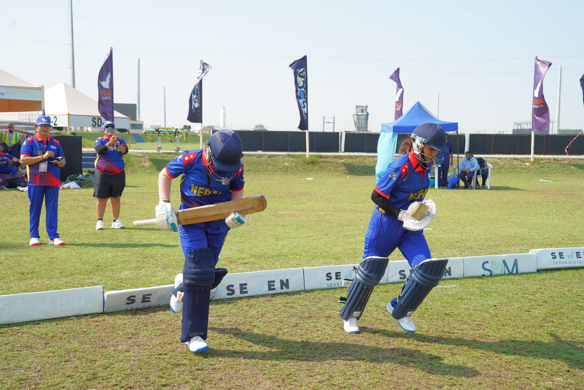 नेपालका लागि कप्तान पुजा महतोले ३८ बलमा ४ चौकाको सहयोगमा ३४, ओपनर साना प्रविनले १८ बलमा ५ चौकाको सहयोगमा २५ तथा ज्योत्सिका मरासिनीले १८ बलमा २३ रन जोडिन् ।