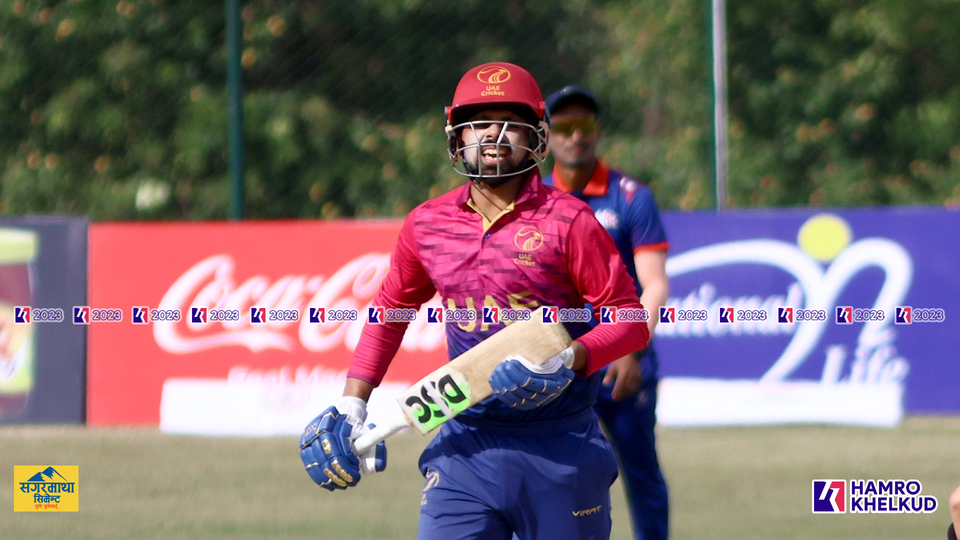 युएईका लागि अलि नासिरले सर्वाधिक २१ तथा मोहम्मद वासिम र जुनैद सिद्धिकीले समान १३ रन जोडे । बासिल हमिदले १२, वृत्य अरबिन्दले ११ रन जोड्दा ६ ब्याटरले रनको खाता समेत खोल्न सकेनन् ।
