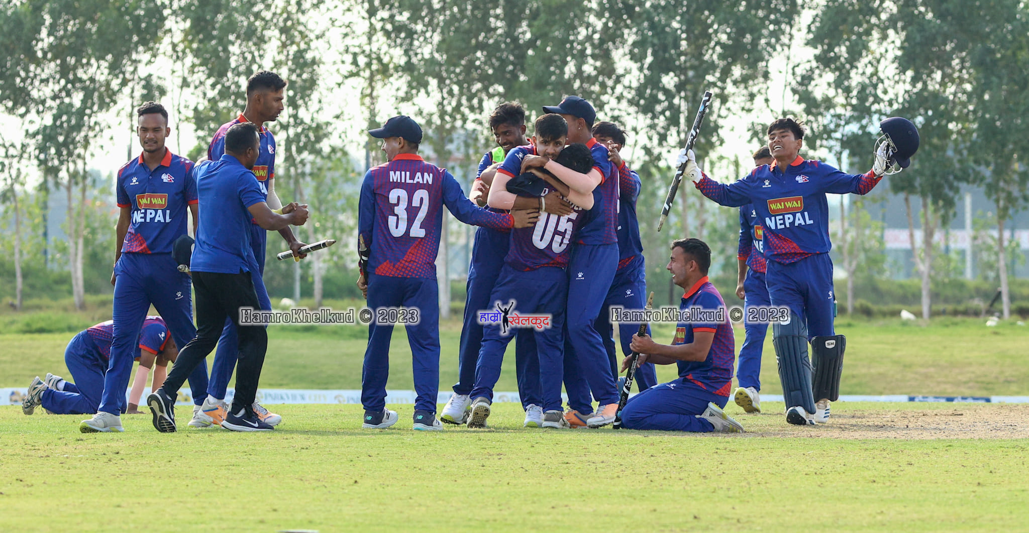 काठमाडौं (हाम्रो खेलकुद)- लगातार दोस्रो हारसँगै नेपाली युवा टोली युएईमा जारी एसिसी यु १९ एसिया कपबाट बाहिरिएको छ । समूह चरणको आफ्नो दोस्रो खेलमा नेपालले बंगलादेशसँग ७ विकेटले हार बेहोरेको थियो। समूह लगातार दुई खेल हारेको अफगानिस्तान पनि प्रतियोगिताबाट बाहिरिएको छ। बंगलादेशले र श्रीलंका दुवै टोलीले नेपाल र अफगानिस्तानलाई हराएका छन्। आज नेपालले दिएको १ […]
