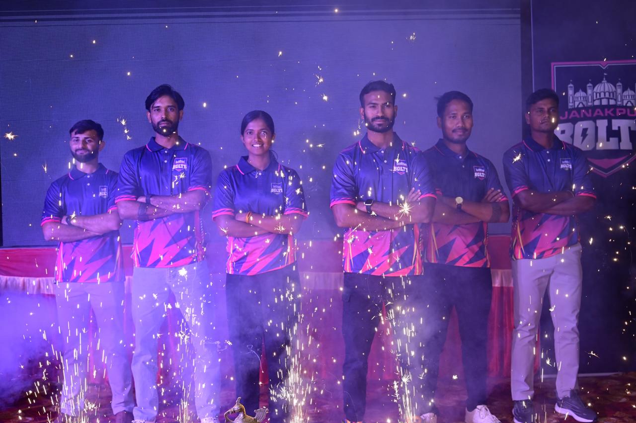 मधेश प्रदेश खेलकुद तथा समाजकल्याण मन्त्री प्रमोद जयसवाल र जनकपुर बोल्ट्सका मार्की खेलाडी आशिफ शेखले संयुक्त रुपमा जनकपुरमा सोमवार साँझ जर्सी अनावरण गरे।