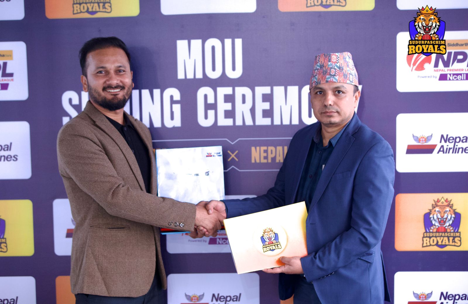 काठमाडौं (हाम्रो खेलकुद)- सिद्धार्थ बैंक नेपाल प्रिमियर लिग (एनपिएल) टोली सुदुरपश्चिम रोयल्स र नेपाल एअरलाइन्स कर्पोरेसनबीच प्रायोजन सम्झौता भएको छ ।
