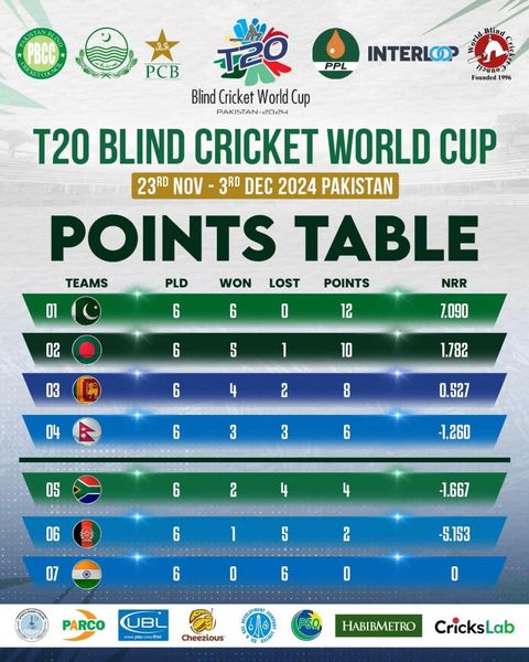 काठमाडौं(हाम्रो खेलकुद) – नेपाल पाकिस्तानमा जारी नेत्रहिन टि ट्वान्टी विश्वकपको सेमिफाइनलमा पुगेको छ ।