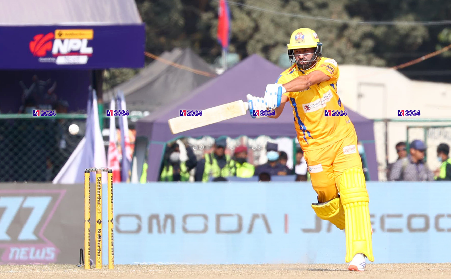 काठमाडौं (हाम्रो खेलकुद) – नेपाल प्रिमियर लिग (एनपीएल) अन्तर्गत लिग चरणको अन्तिम खेलमा कर्णाली याक्सले जनकपुर बोल्ट्ससामु १ सय ३० रनको मध्यम लक्ष्य प्रस्तुत गरेको छ । कीर्तिपुरस्थित त्रिवि क्रिकेट मैदानमा जनकपुरले टस जितेर फिल्डिङ रोजेपछि ब्याटिङ गरेको कर्णालीले निर्धारित २० ओभरमा ९ विकेटको क्षतिमा १ सय २९. रनको योगफल तयार पारेको हो । कर्णालीका […]