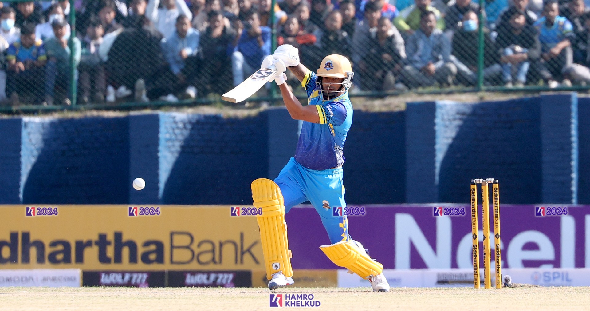 एनपिएलमा उनले जनकपुर बोल्ट्ससँग पहिलो खेल खेल्दा १४ बलमा ३ चौकासहित १४ रनमा आउट भए । उनलाई क्यानडाका अलराउण्डर हर्ष ठाकेरले बोल्ड गरे । उक्त खेलमा १ सय ४१ रन बनाएको कर्णाली ८ विकेटले हारेको थियो।