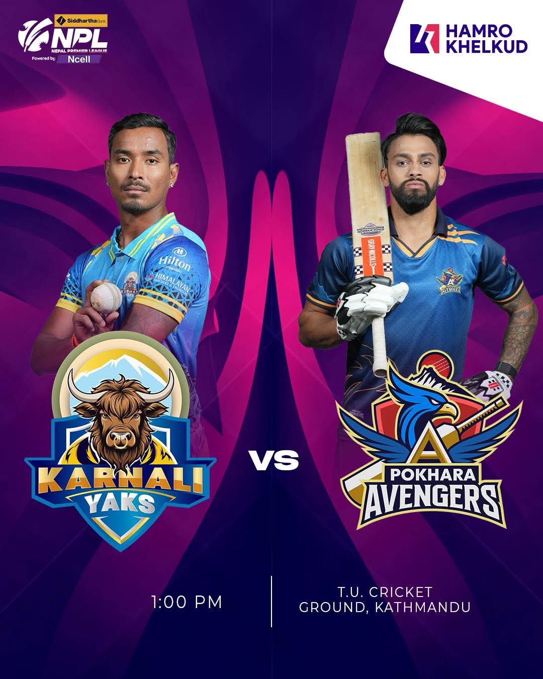 आज दोस्रो खेलमा कुशल भुर्तेलको नेतृत्वमा रहेको पोखरा एभेन्जर्सले राष्ट्रिय टोलीका सिनियर खेलाडी सोमपाल कामीको कप्तानीमा रहेको कर्णाली याक्सको सामना गर्नेछ । खेल दिउँसो १ बजे सुरु हुनेछ ।