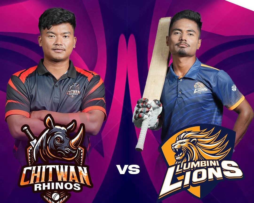 कुशल मल्लको कप्तानीमा रहेको चितवन राइनोजले राष्ट्रिय टोलीको रोहित पौडेलको नेतृत्वमा रहेको लुम्बिनी लायन्ससँग खेल्नेछ। कीर्तिपुरस्थित टियु मैदानमा खेल बिहान ९ बजे सुरु हुनेछ।