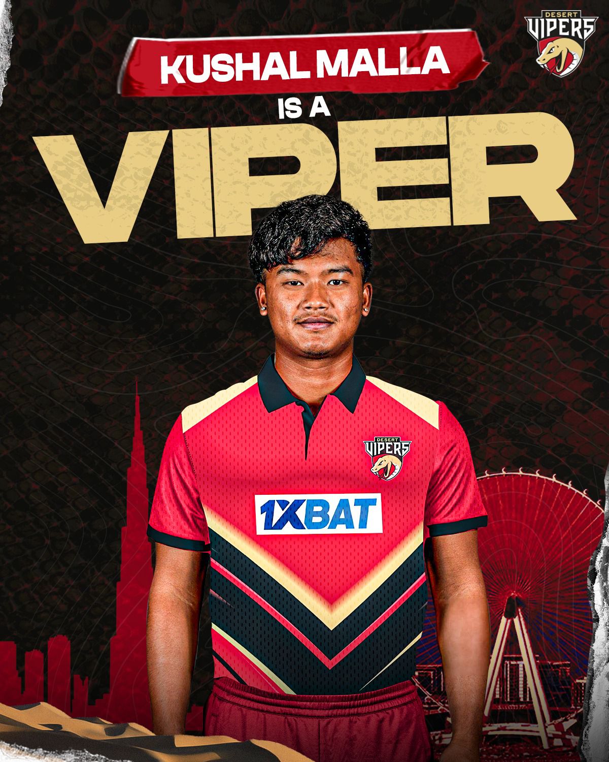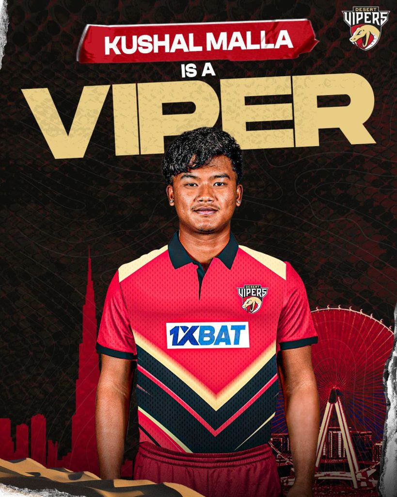 नेपाली अलराउण्डर कुशललाई अनुबन्ध गरेको आइएल टि ट्वान्टीको टोली डेजर्ट भाइपर्सले सामाजिक सञ्जालमार्फत जनाएको छ ।