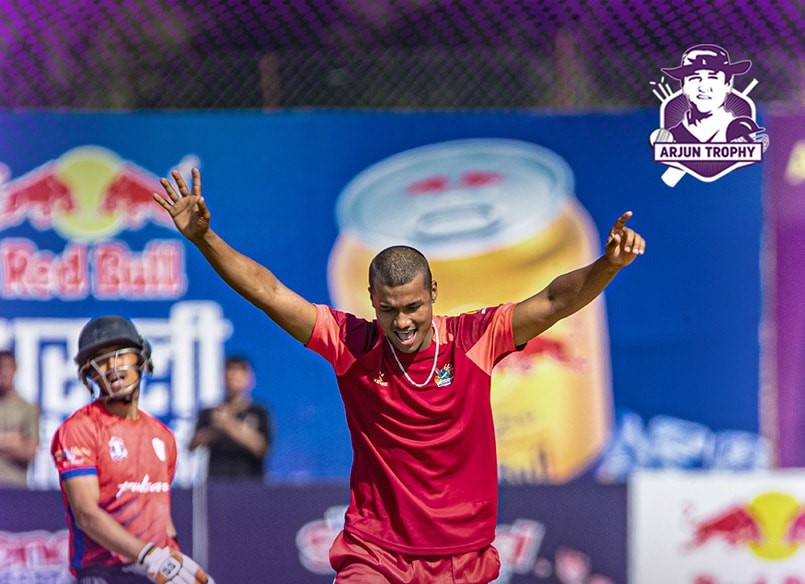 कप्तान नन्दन यादवले १५ बलमा २ छक्काको सहयोगमा २० रन जोडे । सचिन लेखकले ११ बलमा १३ रन जोडे । दशरथका लागि सलाउद्दिनले ३.४ ओभरमा १४ रन खर्चिएर ५ विकेट लिए । दीवान पुनले ३ तथा रुपेश सिंहले १ विकेट लिए ।