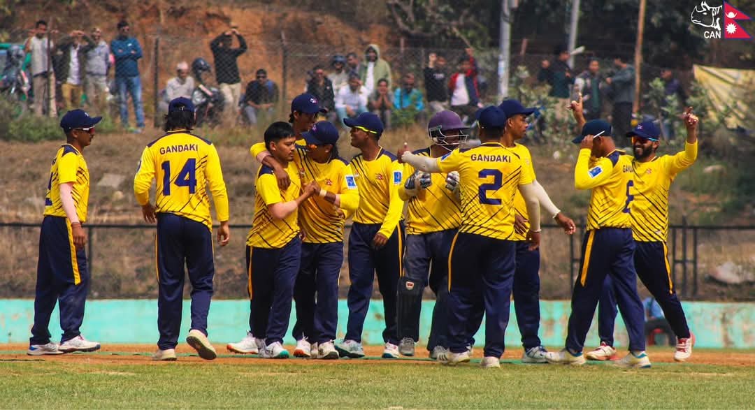 काठमाडौं (हाम्रो खेलकुद)- प्रधानमन्त्री कप (पिएम) राष्ट्रिय क्रिकेट प्रतियोगितामा गण्डकी प्रदेश पहिलो जित दर्ज गर्न सफल भएको छ। आज गण्डकीले कर्णाली प्रदेशलाई ४ विकेटले पराजित गर्यो।