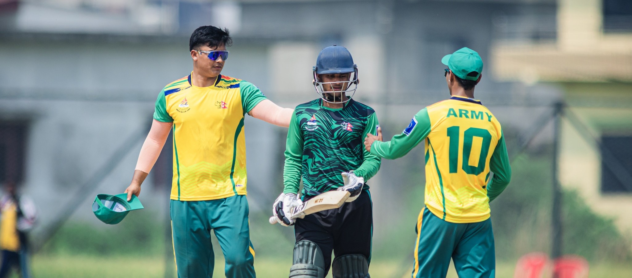 आर्मीका लागि सन्तोष कार्कीले ६३ बलमा १० चौकाको मद्दतमा नट आउट रहँदै सर्वाधिक ५५ रनको योगदान गरे । तृतराज दासले ३१ रनमा आउट हुँदा कप्तान विनोद भण्डारीले २० रनमा नट आउट रहे ।